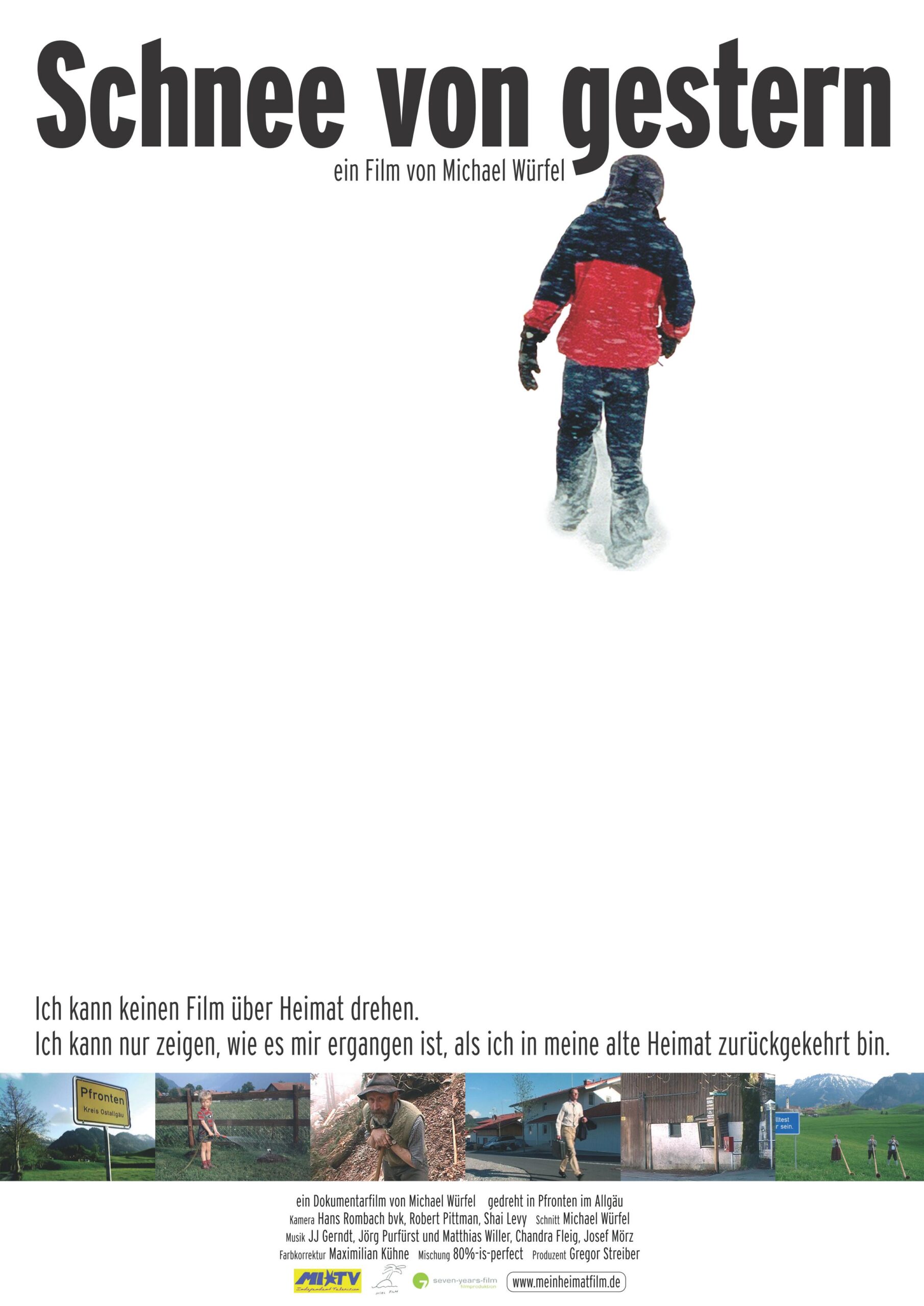 „Schnee von Gestern – mein Heimatfilm“ ist die Dokumentation eines Selbstversuches. Der Filmemacher Michael Würfel versucht, nach vielen Jahren in der Stadt wieder in der alten Heimat glücklich zu werden: Es war doch immer gut da.